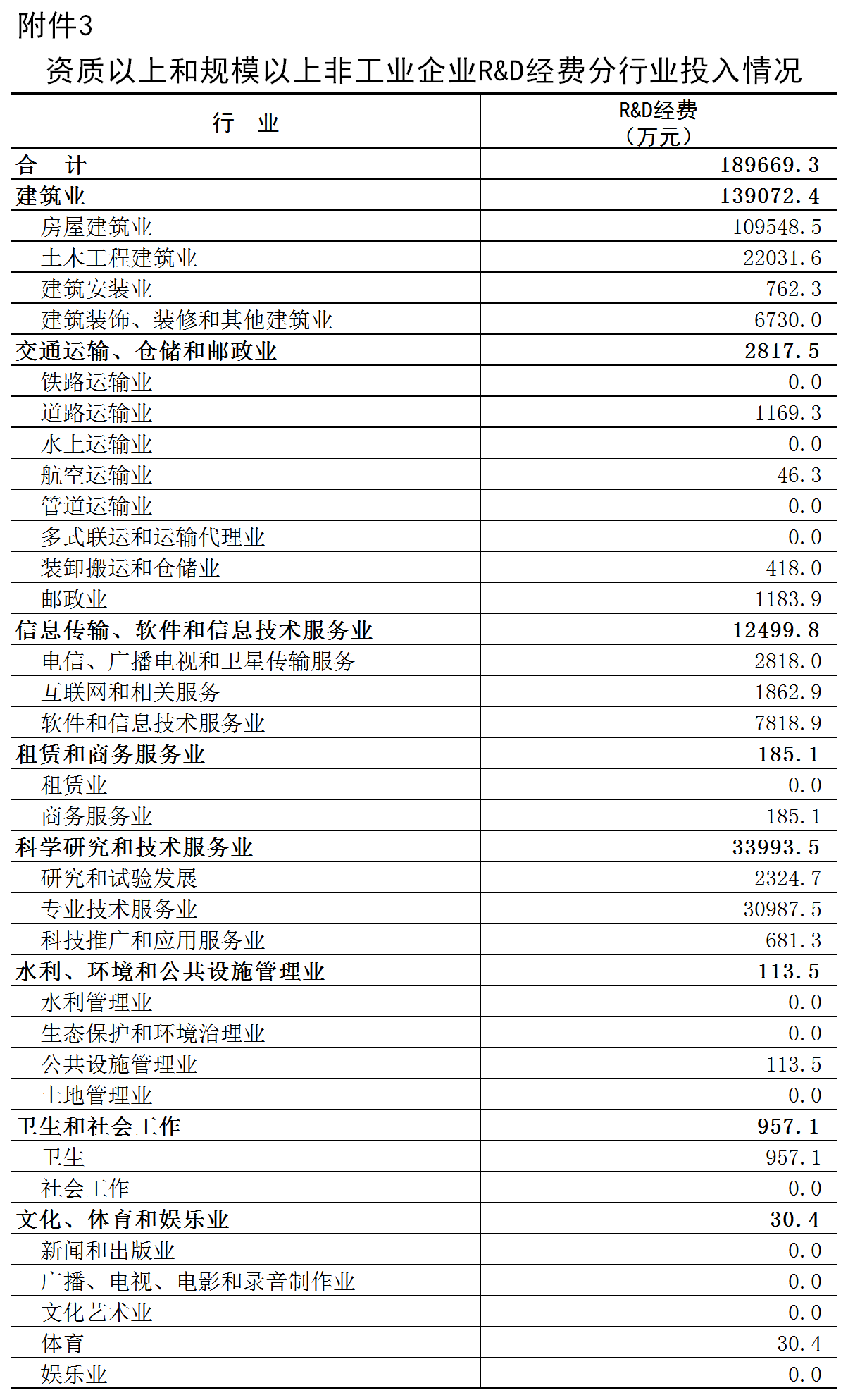 3.资质以上和规模以上非工企业R&D经费分行业投入情况