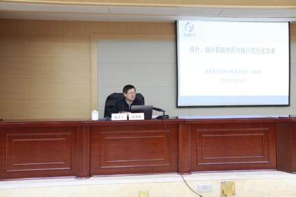 闾海琪以“统计、统计职能作用与统计现代化改革”为主题,从统计、统计学、统计意识三大核心概念,统计调查、统计分析、统计监督三大统计职能,统计现代化改革的沿革背景、主要内容、部署要求以及重点工作等内容,进行了全面、系统的介绍和讲解。